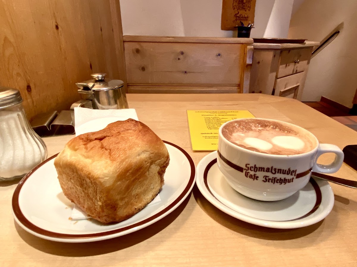 This cozy café has a warm, wood-themed interior and serves Schmalzgebäck along with a nice variety of pastries. Schmalznudel is a traditional Bavarian fried donut pastry—crispy on the outside and soft and fluffy on the inside. There’s also a lovely courtyard, making it a great spot to relax and enjoy something sweet for both locals and tourists alike. Unfortunately, it was raining that day, and a bit too chilly to wait outside for takeout, so we decided to eat inside. We were lucky to get a seat at the very back of the upstairs area. The place was pretty busy, but we still managed to enjoy a cozy and relaxing time. Definitely recommended!