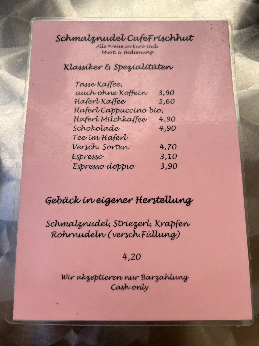 Schmalznudel - Cafe Frischhut Menu